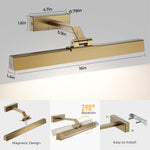 Picture Lights for Wall, Brass Battery Operated Picture Light 16in Art Light CCT Dimmable Recharging Battery Wall Light with Remote Control for Living Room Gallery