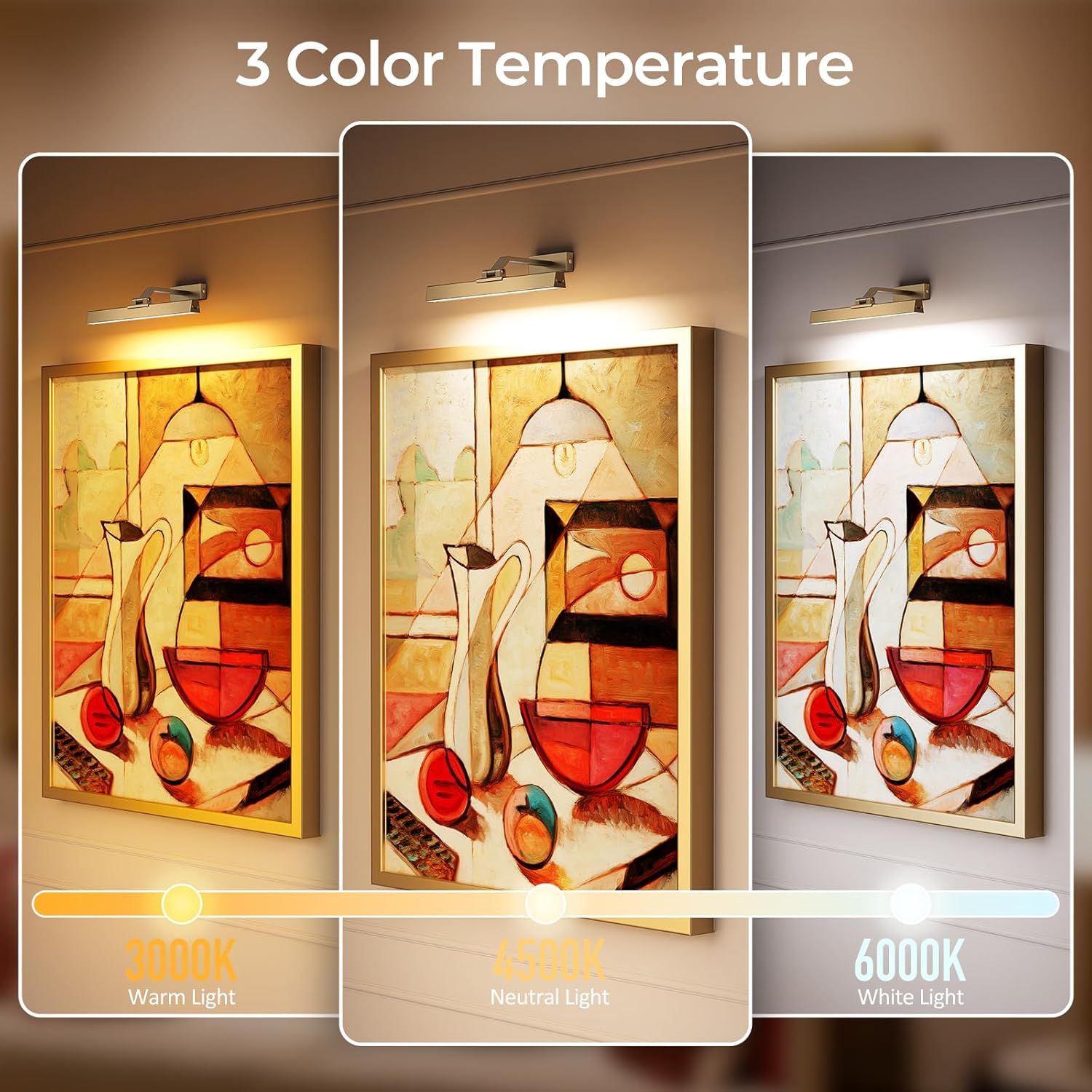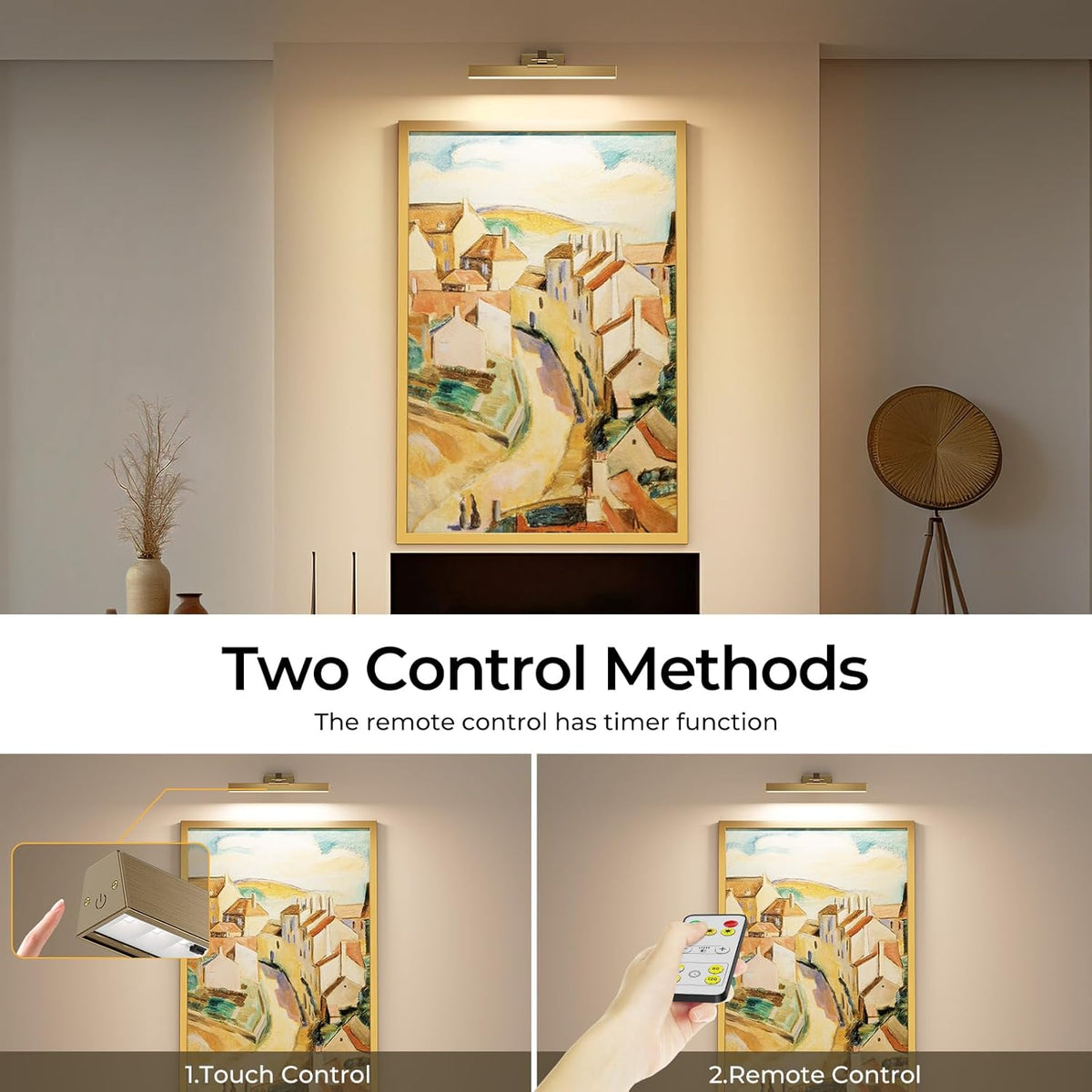 - [Remote and Touch Control]: This wall light for pictures can be controlled by remote or touch button. The wall lamps battery operated can be adjusted to three color temperatures, you can choose the appropriate tone according to the illuminated objects and personal preferences, and it also has memory and timer function