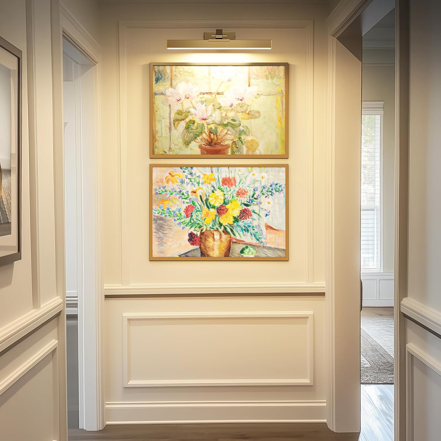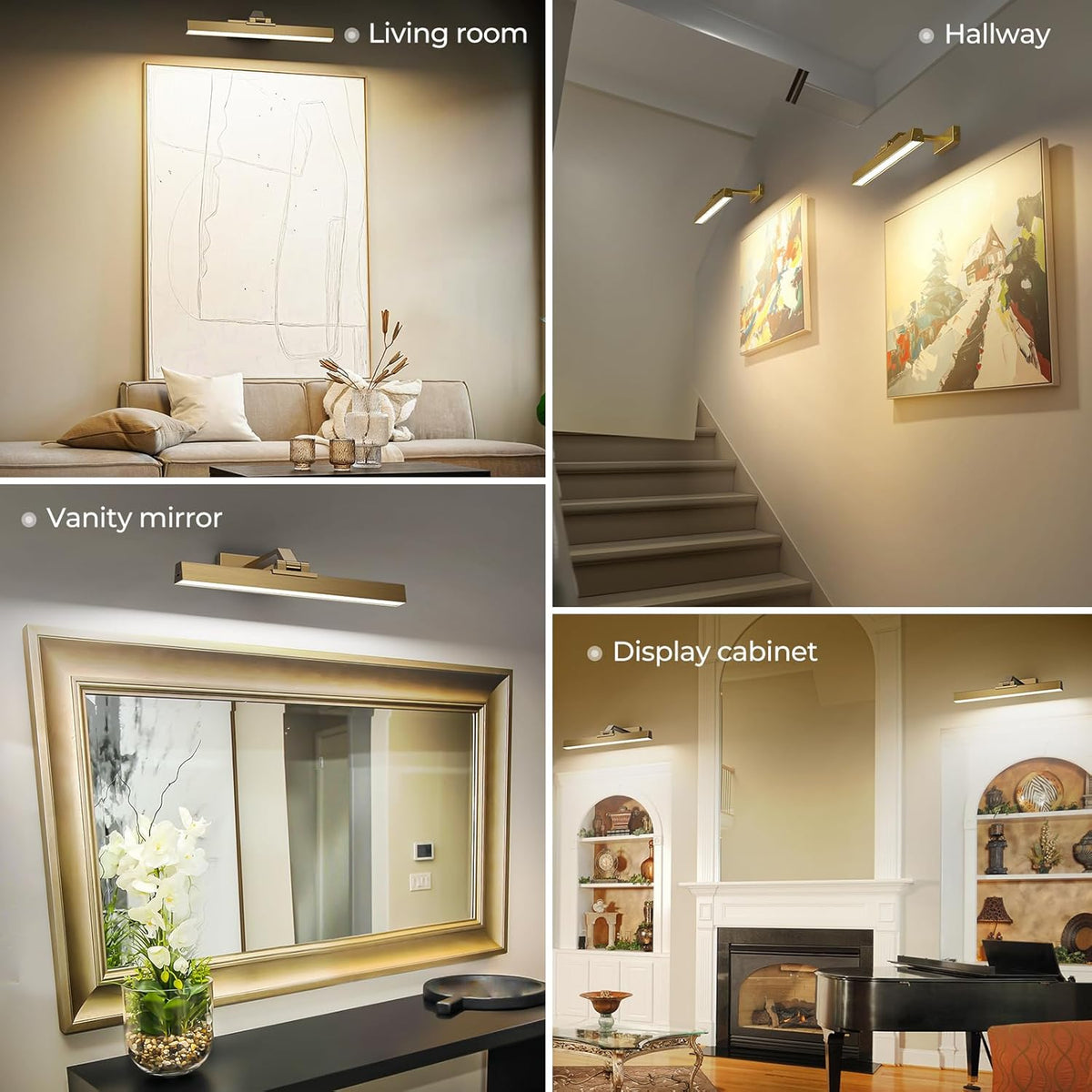 - [Wide Range of Lighting]: The unique focusing cup design of brass picture light for art makes the longer lighting range. Ensures the brightness, uniformity, and spectrum continuity. No glare and no flicker. Make your art lifelike without overexposure and whitening