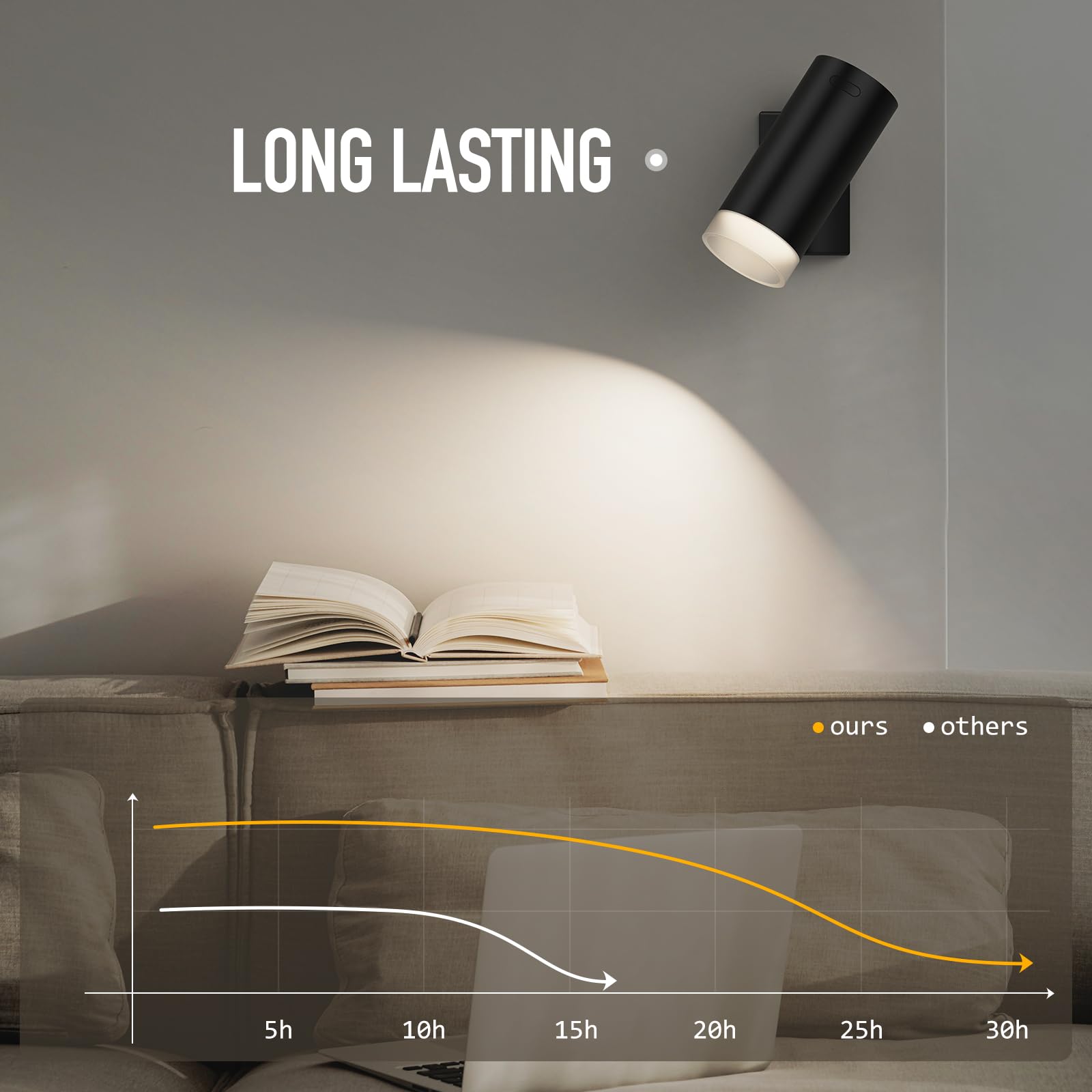- [Wireless]: The wireless sconces have a built-in high-capacity rechargeable battery with USB-C fast charging port, fully charged in 3 hours. You can place it flexibly as a flashlight or emergency light in case of power outages.